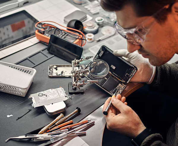 • فك وتركيب الأجهزة، واكتشاف الأعطال، واستبدال القطع التالفة، مع إتقان مهارات اللحام الدقيقة والصيانة.
